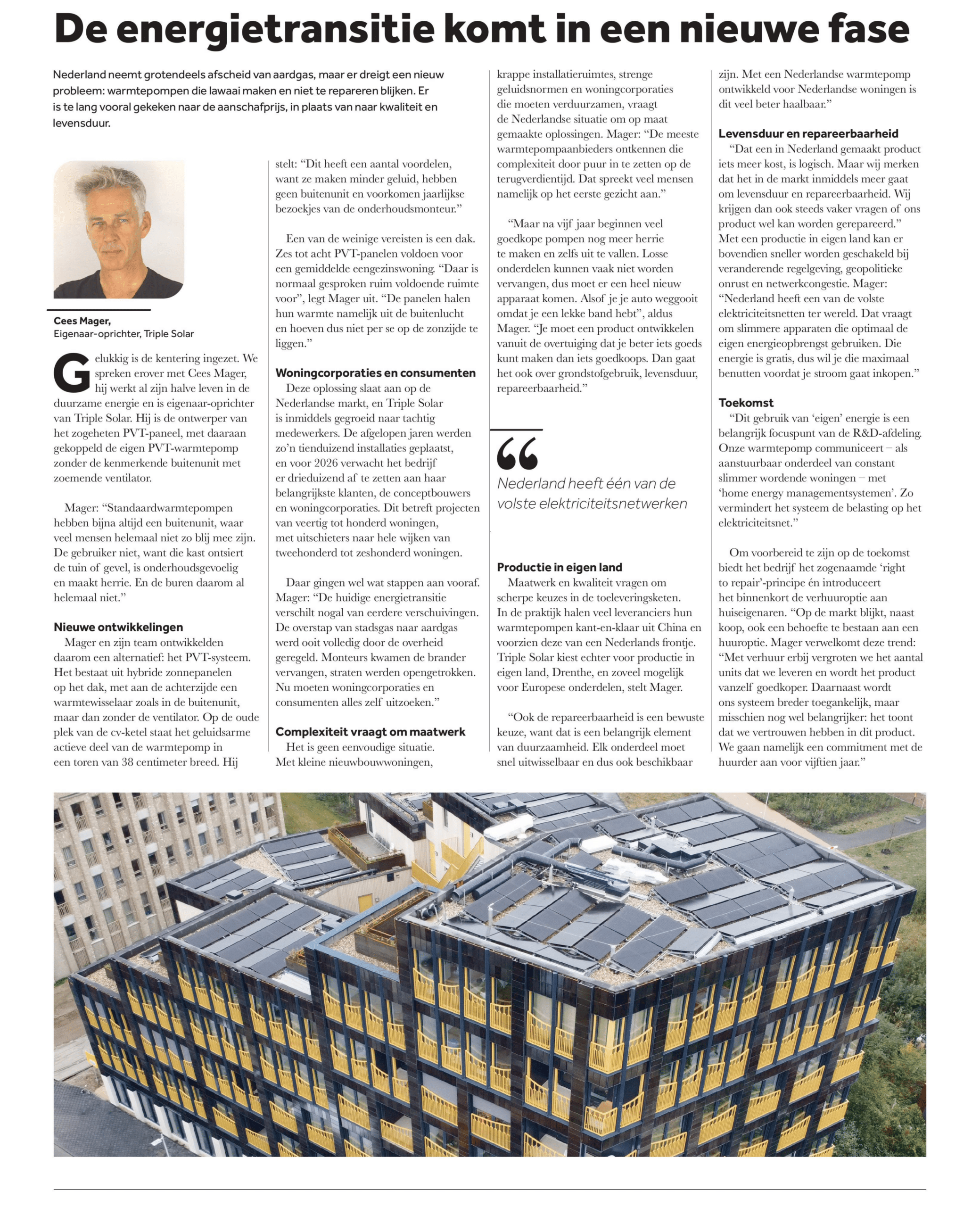 In Het Financieele Dagblad van maandag 15 december verscheen een interessant interview met onze oprichter en CEO Cees Mager. Hierin vertelt hij alles over de nieuwe fase van de energietransitie én licht hij toe waarom deze stap zo belangrijk is.