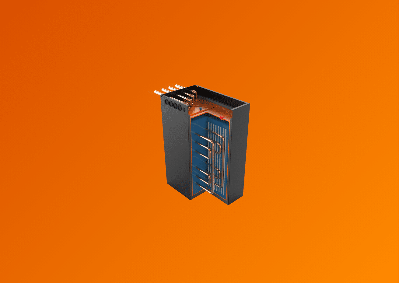 De klassieke “boiler” is vaak groot, verliest onderweg warmte en neemt veel ruimte in beslag. Onze Thermische Batterij is tot vier keer compacter dan een traditionele boiler en energiezuiniger, omdat hij optimaal samenwerkt met de PVT-warmtepomp.