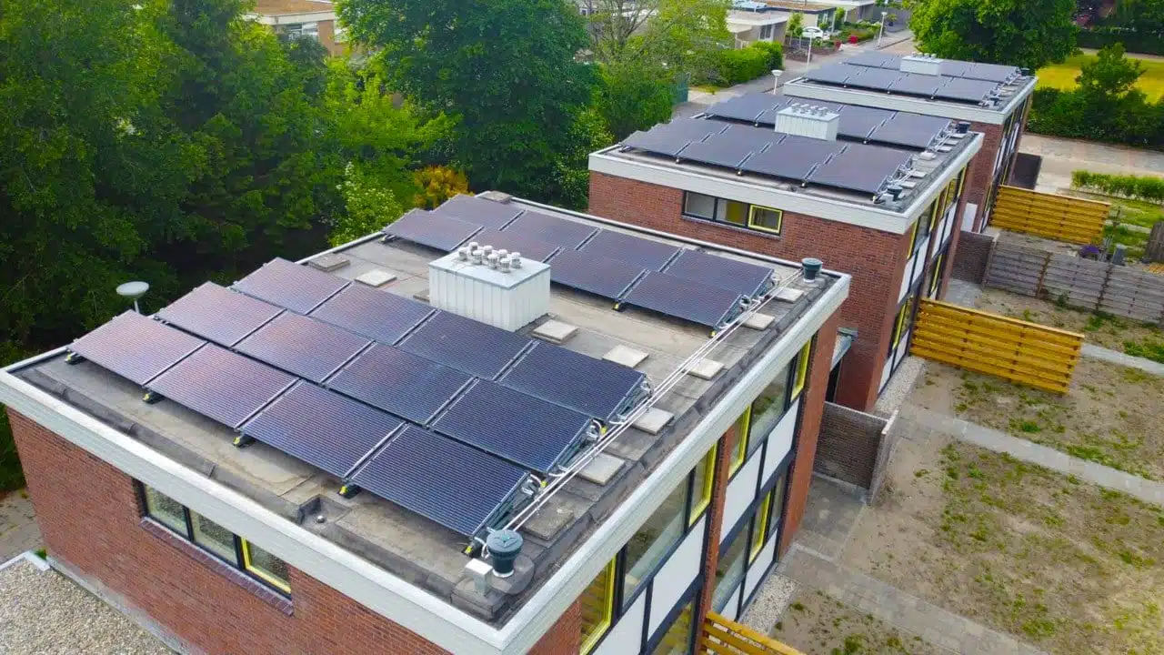 De combinatie Triple Solar PVT-panelen met een NIBE water/water-warmtepomp zorgt in de woningen voor verwarming, warm tapwater én elektriciteit.