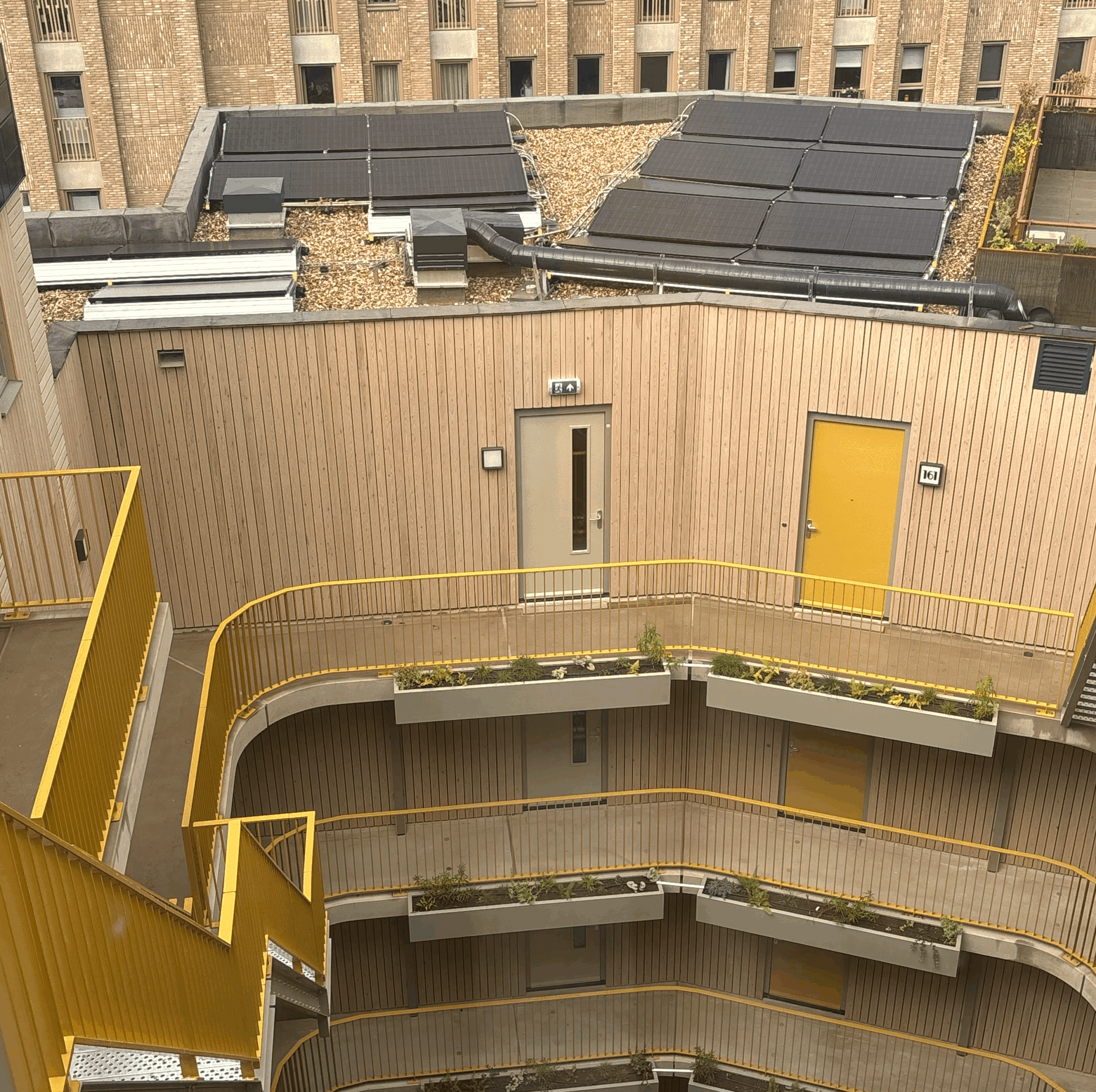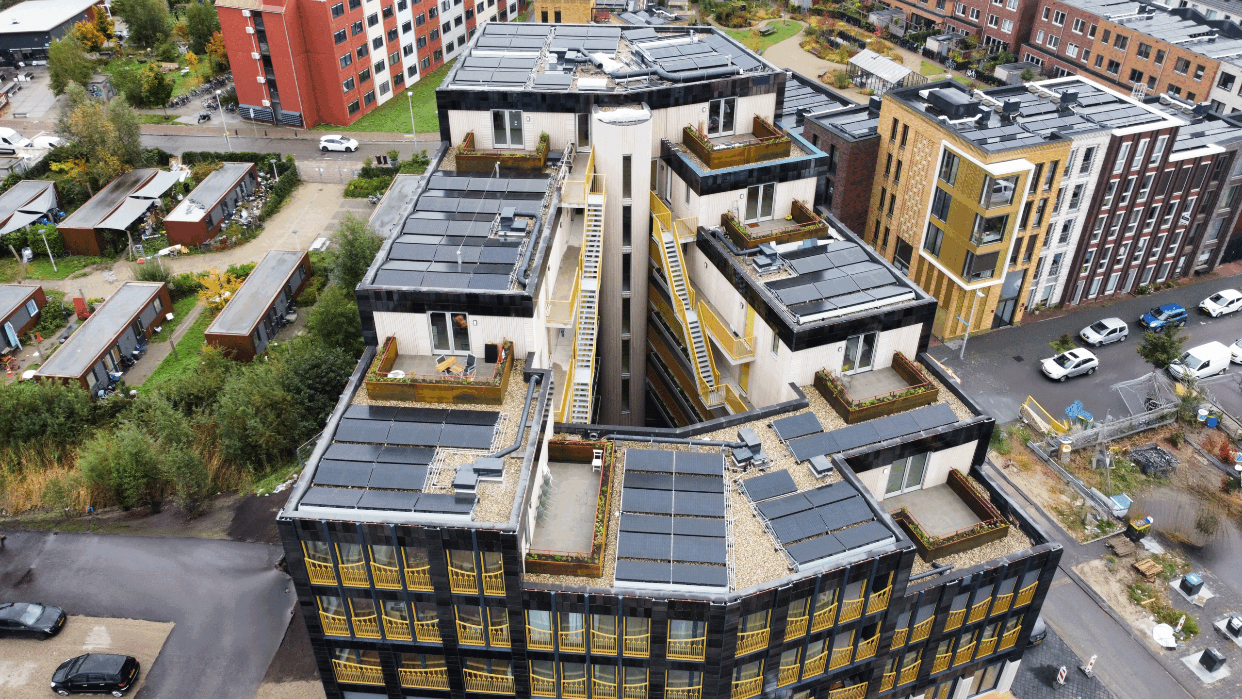 Het appartementencomplex is uitgerust met 120 PVT-panelen en 37 PVT-warmtepomp 5.Dit is een modulerende, propaan warmtepomp 1 tot 5 kW, met zeer compacte dimensies (bxdxh = 38x65x185 cm) . Hierdoor worden warmte en elektriciteit lokaal en efficiënt opgewekt. Het PVT-systeem levert zowel verwarming als warm tapwater voor de bewoners. Dankzij deze slimme energieoplossingen profiteren bewoners van een comfortabele, duurzame en toekomstbestendige energievoorziening. Hierdoor draagt het gebouw bij aan de klimaatdoelstellingen van de gemeente Utrecht.